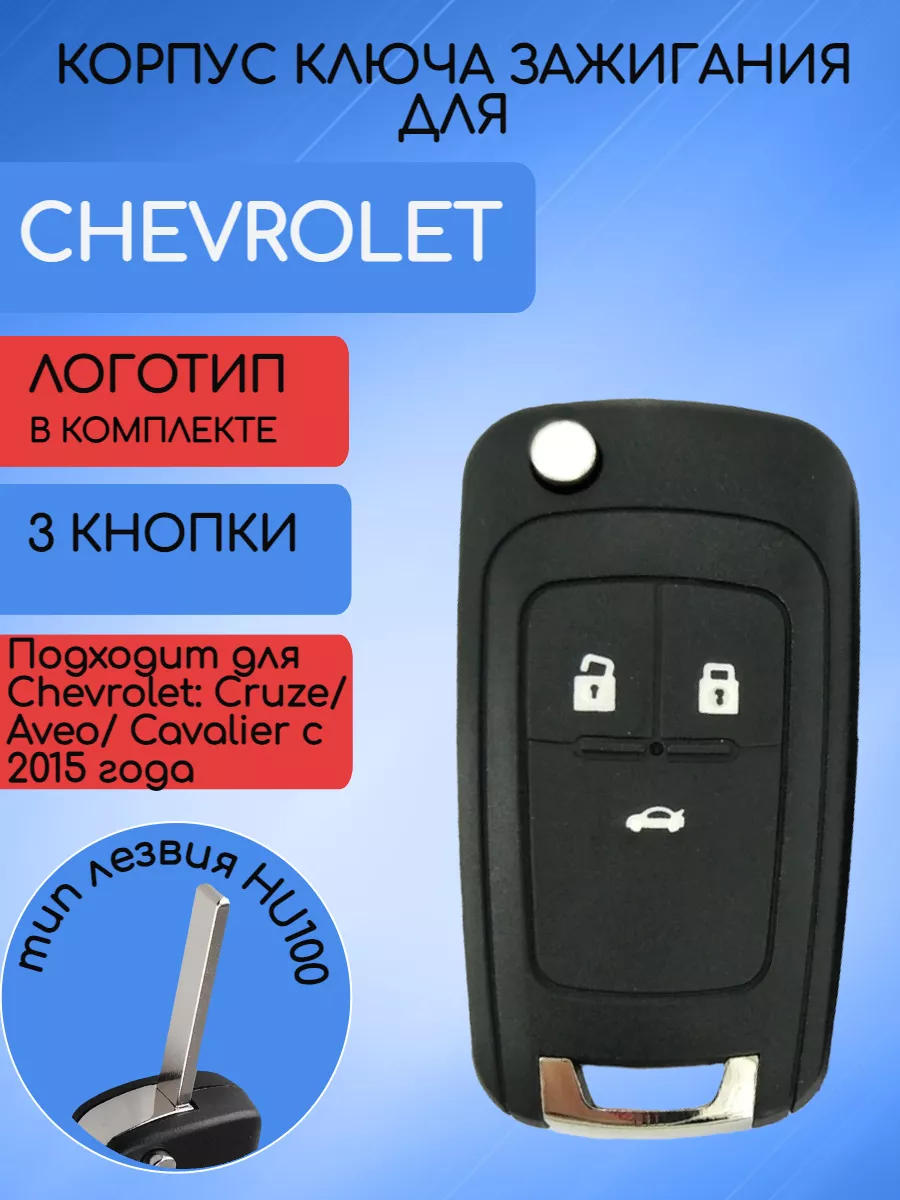 Корпус ключа зажигания автомобиля с 3 кнопками для Chevrolet. Тип лезвия HU100. Предназначен для замены изношенного корпуса ключа на новый - если стерлись кнопки, повредился корпус, а также отломалось жало. Вы можете заменить его на новый, идеальное решение вашей проблемы! Обратите внимание!!! Подойдет для: Chevrolet Cruze / Aveo / Cavalier с 2015 года!!! Важное примечание: 1. Этот товар не является пультом дистанционного управления, это просто корпус дистанционного ключа для замены. 2. Внутри нет Платы и чипа. Лезвие нарезается отдельно. Все внутренности переставляются от оригинального ключа, не забудьте переставить чип! Корпус ключа аналогичен штатному и поддерживает те же функции. Заменить корпус старого ключа Вы можете как самостоятельно, так и обратившись в ближайшую мастерскую.