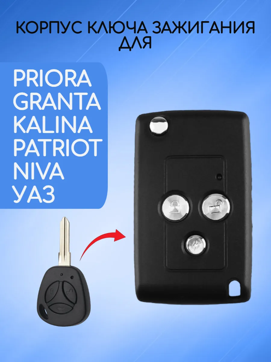 Модифицированный корпус выкидного ключа зажигания автомобиля с 3 кнопками для Лада. Предназначен для замены изношенного корпуса ключа на новый модифицированный - если стерлись кнопки, повредился корпус или отломалось лезвие ключа. Вы можете заменить его на новый. Идеальное решение вашей проблемы! Подходит для: Калина / Гранта / Приора / Нива. Логотип входит в комплект. Примечание: Этот товар не является дистанционным ключом, это просто корпус. Лезвие нарезается отдельно. Все внутренности переставляются из оригинального ключа! Корпус ключа аналогичен штатному и поддерживает те же функции. Заменить корпус старого ключа Вы можете как самостоятельно, так и обратившись в ближайшую мастерскую.