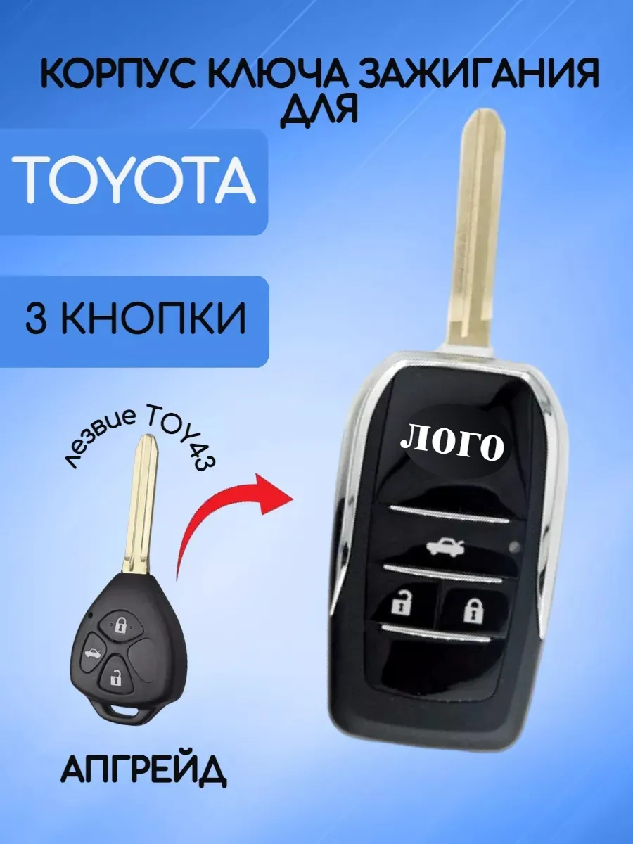 Корпус выкидного ключа зажигания 2, 3, 2 кнопки + panic, 3 кнопки + panic на выбор для Toyota. Предназначен для замены изношенного корпуса ключа на новый выкидной - если стерлись кнопки, повредился корпус, а также отломалось жало. Сделайте апгрейд вашего ключа! Подходит для Toyota Rav4 / Corolla / Hilux / Yaris / Avalon / Echo / Prado и других моделей, если Ваш ключ выглядит как на нашем первом фото. Примечание: Этот товар не является дистанционным ключом, это просто корпус. Все внутренности переставляются из оригинального ключа, помимо платы необходимо переставить чип в предназначенный для отсек рядом с лезвием. Тип лезвия TOY43. Лезвие нарезается отдельно. Корпус с логотипом.