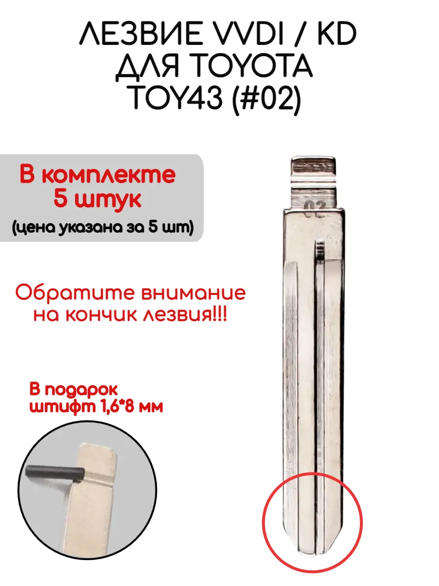 Набор лезвий из 5 штук VVDI KD TOY43 (#02) с вытянутым концом для Toyota.