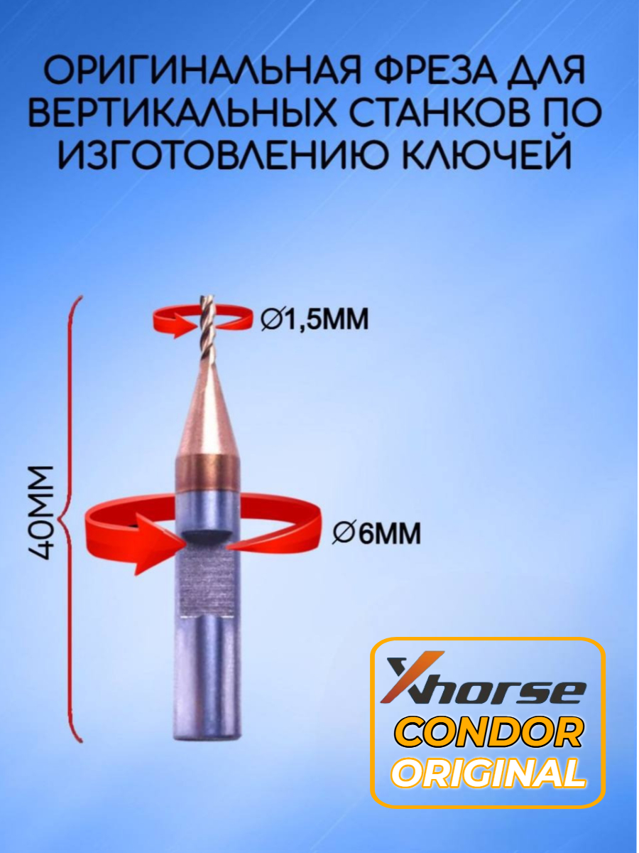 Выполняйте самые сложные и деликатные работы по нарезке ключей с ювелирной точностью. Оригинальная фреза Xhorse 1.5 мм — это специализированный инструмент для вашего станка Condor или Dolphin, созданный для получения идеального реза на ключах с узким профилем.