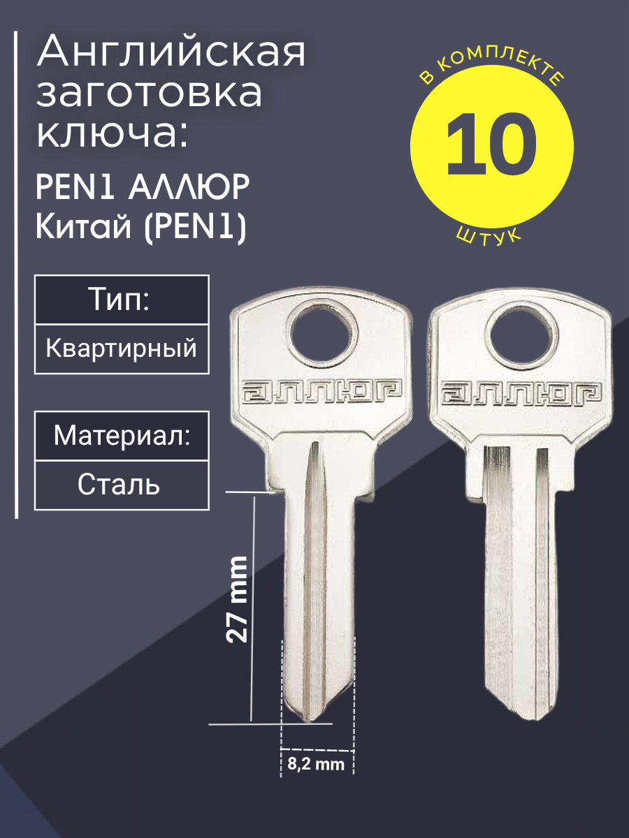 Английская заготовка Аллюр для универсального ключа от дверных врезных замков вертикального типа из стали высокого качества.