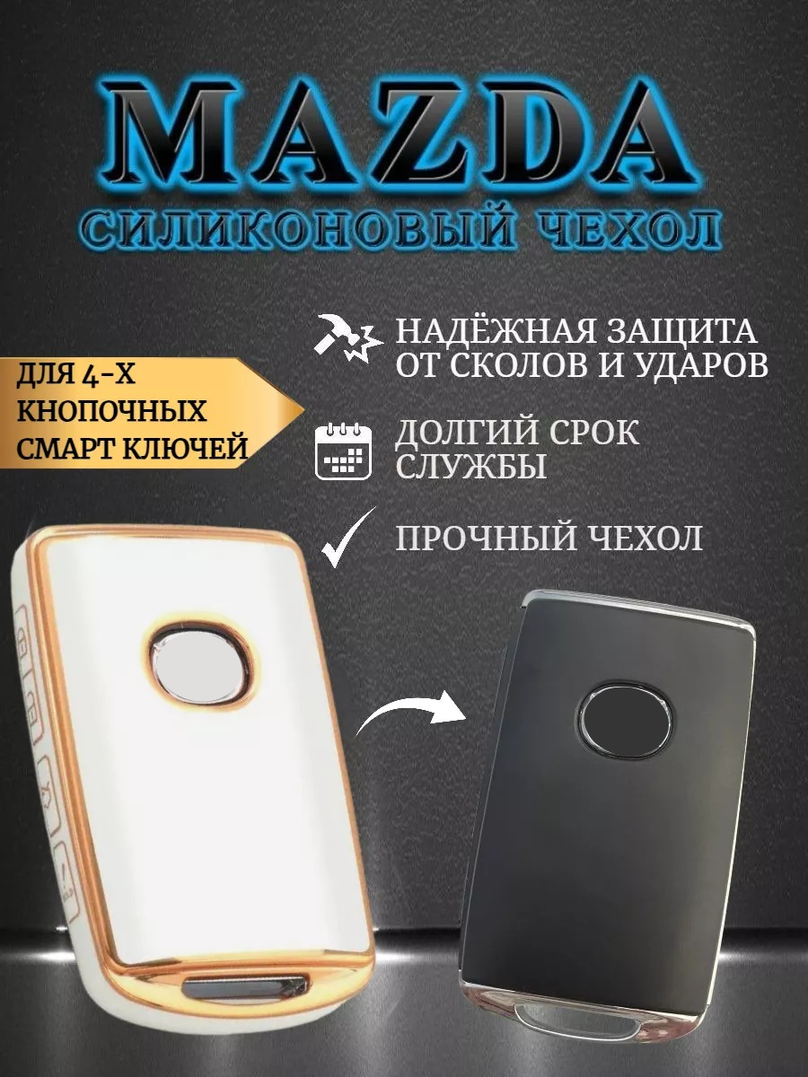 Чехол для ключа МАЗДА MAZDA CX5 CX3 CX-30 CX8 CX-5 CX9 и другие модели. Высококачественный силиконовый чехол с золотой окантовкой, поможет сохранить первоначальный внешний вид ключа, продлит срок его эксплуатации и сделает его более устойчивым к ударам, а так же защитит его от грязи и влаги. Оригинальное исполнение, не препятствует прохождению сигнала, совместимость кнопок 100%, также плотное прилегание чехла. ВАЖНО: перед заказом внимательно сопоставьте фотографию чехла с вашим ключом, чтобы вы не ошиблись с выбором.
