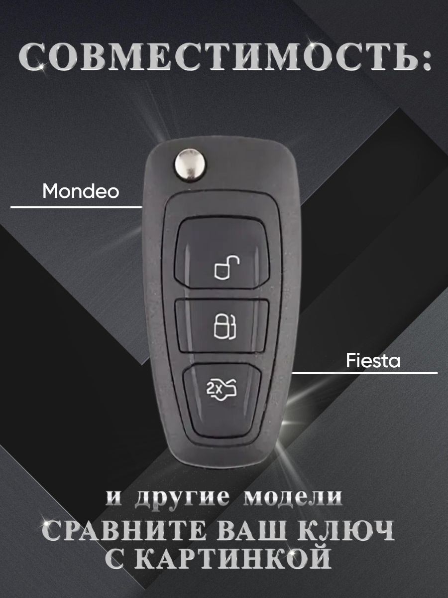 Чехол для выкидного ключа Ford / Форд / 3 кнопки с ремешком в комплекте. Подойдет для моделей: