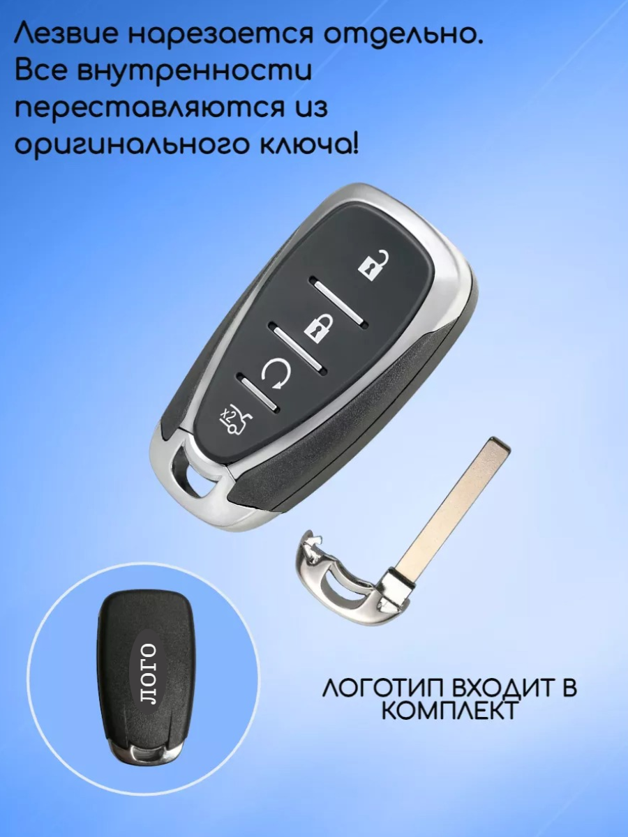 Корпус смарт ключа зажигания автомобиля с 4 кнопками для Chevrolet. Тип лезвия HU100. Предназначен для замены изношенного корпуса на новый - если стерлись кнопки, повредился штатный ключ. Вы можете заменить его на новый. Идеальное решение вашей проблемы! Если ваш дистанционный ключ выглядит так же, то он подойдет на: Chevrolet Cruze (2017-2019); Malibu (2016-2019); Camaro (2016-2019); Volt (2016-2019) ; Bolt EV (2017-2019); Trax (2017-2019); Equinox (2018-2019); Traverse (2018-2019). Примечание: Этот товар не является дистанционным ключом, это просто корпус. Лезвие нарезается отдельно. Все внутренности переставляются из оригинального ключа! Корпус ключа аналогичен штатному и поддерживает те же функции. Заменить корпус Вы можете как самостоятельно, так и обратившись в ближайшую мастерскую.
